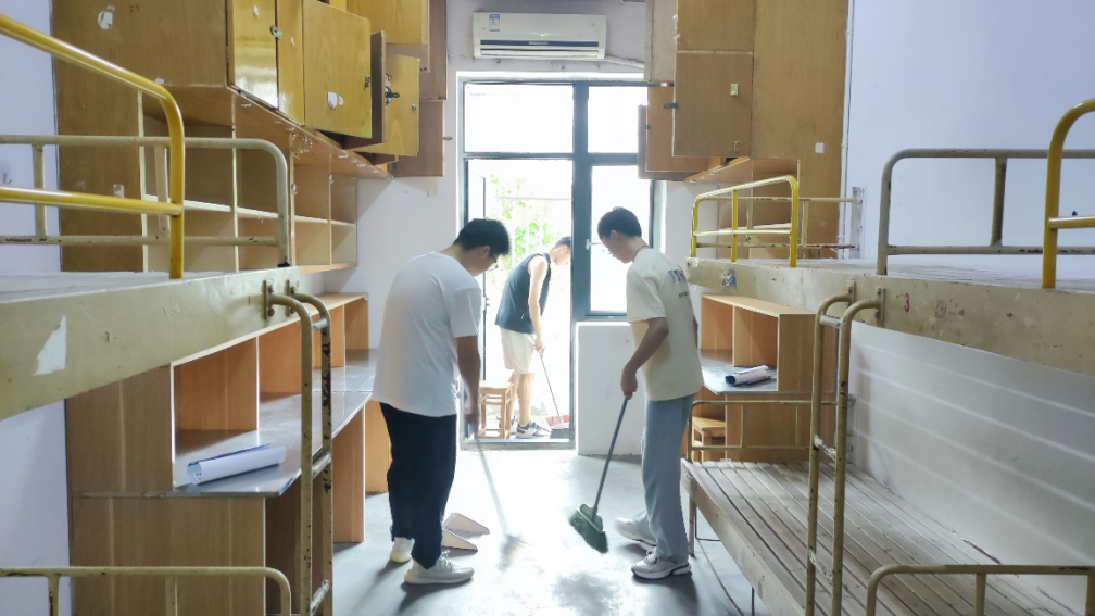 志愿者们自备清扫工具,组成三人小组对新生宿舍进行了桌面清理、地面清扫以及安全排查等工作,确保让每个宿舍都以最整洁的面貌迎接2023级的新生的到来。