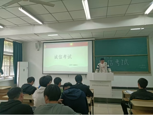 主题班会落实思想引领。学院各年级分头开展主题班会,辅导员、班主任等参与班会,并在会上强调,严肃考风考纪,坚持诚信考试,严格遵守考场纪律。