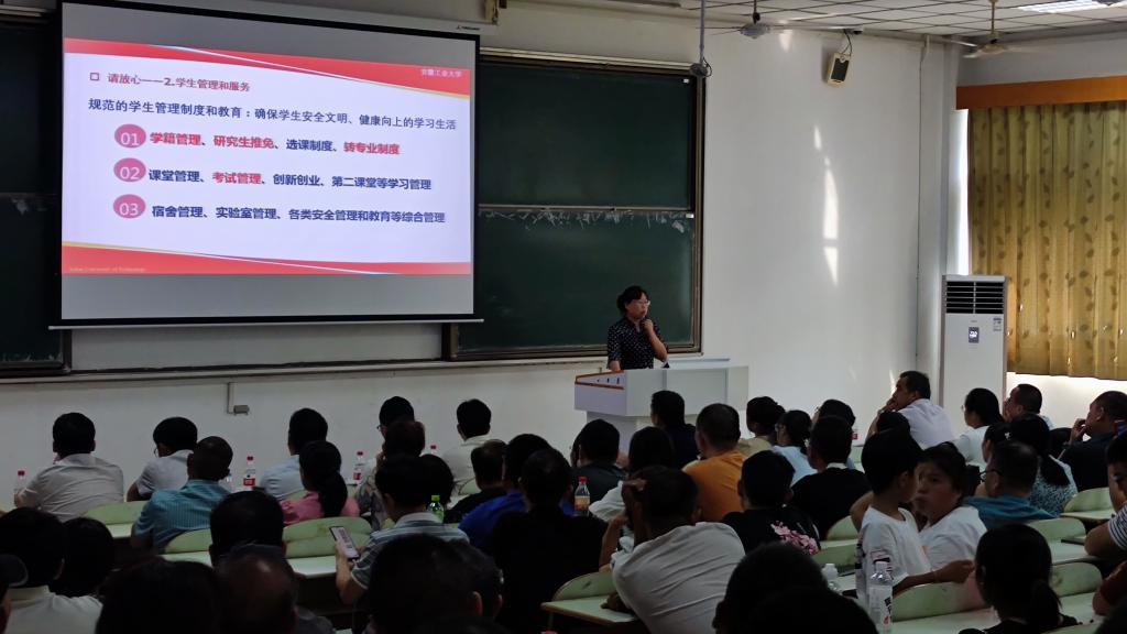 院党委副书记、纪委书记、副院长冀秀芝从“请放心、请协助、请期待”三个方面,介绍了学院的办学特色、学生管理和服务相关制度及学院近年考研就业情况。她希望能通过家校联动、师生互动等方式帮助新生筑牢遵规守纪的意识,严守安全底线,更快适应大学生活,共助学生在学院收获成长、收获进步、收获快乐。