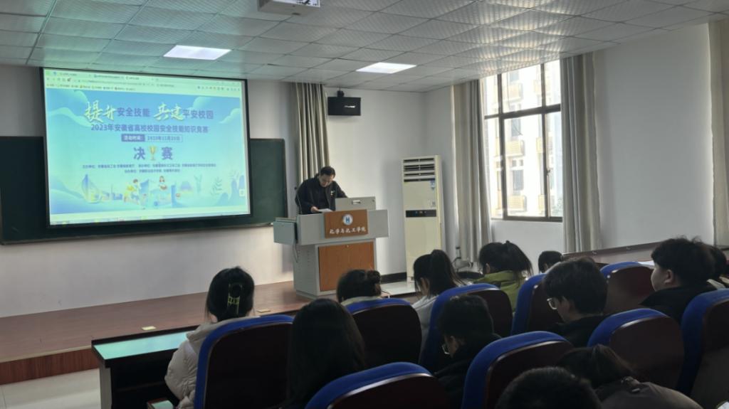 2023年12月25日下午,76net必赢线路检测中心在秀山校区化工楼报告厅组织学生集中收看2023年安徽省高校校园安全技能知识竞赛决赛。院党委副书记、纪委书记、副院长冀秀芝,各年级辅导员及学院本科生及研究生代表100余人参加收看。