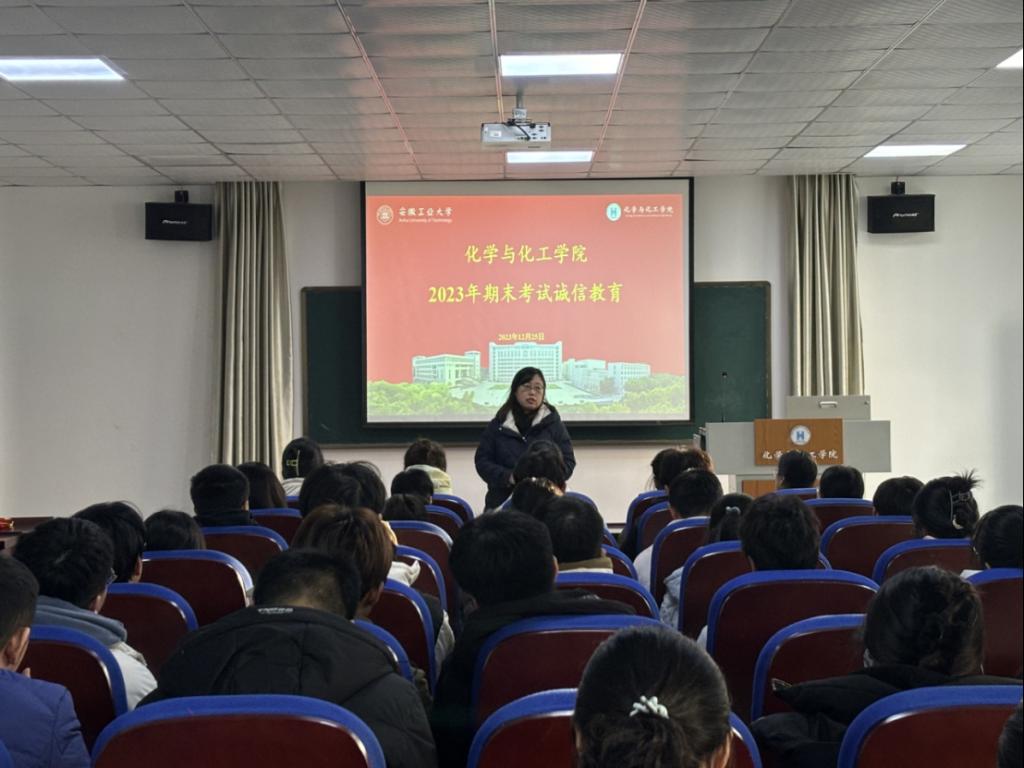 为进一步严肃考风考纪,提高学生的文明素质,加强学院学风建设,12月25日下午,化工学院在秀山校区化工楼报告厅开展考试诚信教育暨考前动员大会,会议由76net必赢线路检测中心党委副书记、纪委书记、副院长冀秀芝主持,全体辅导员、各年级学生党员代表100余人参加会议。