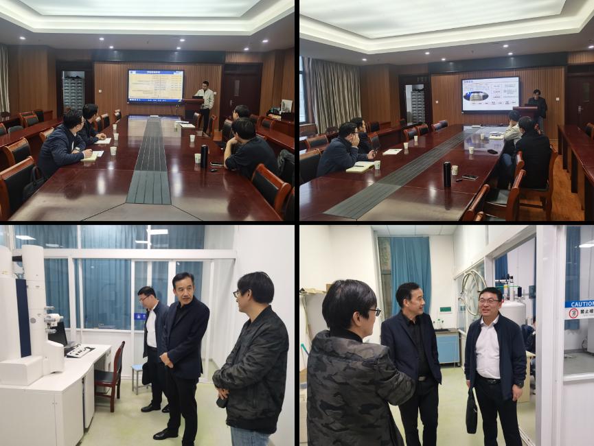 安徽师范大学调研期间,与化学与材料科学学院党委书记汪俊武、副院长陈郑、现代仪器测试中心主任余楠进行了座谈,就兄弟院校学科建设、大型仪器共享平台运行等方面的经验和做法开展了深入交流。座谈会上,化学与材料科学学院副院长陈郑介绍了化学与材料科学学院学科建设、发展与取得的成效;现代仪器测试中心主任余楠围绕中心发展历程和运行情况进行详细的说明。会后,黄宇弦一行实地调研考察了现代仪器测试中心的实际运行情况,并就仪器空间布局、运行模式、管理制度、计费模式、人员设置、费用投入等方面进行了全面了解与沟通。