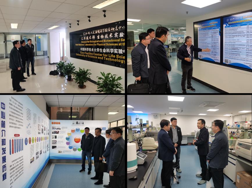 中国科学技术大学调研期间,生命科学实验中心胡兵主任热情接待了黄宇弦一行并开展了座谈。胡主任围绕中国科大生命科学实验中心的整体架构、管理模式、制度建设、经费投入、仪器运行、人员设置、绩效考核等方面进行了详细介绍。座谈会后,生命科学实验中心副主任张家海陪同参观了中心具体运行情况,双方针对运行过程中的细节问题进行了深入探讨。
