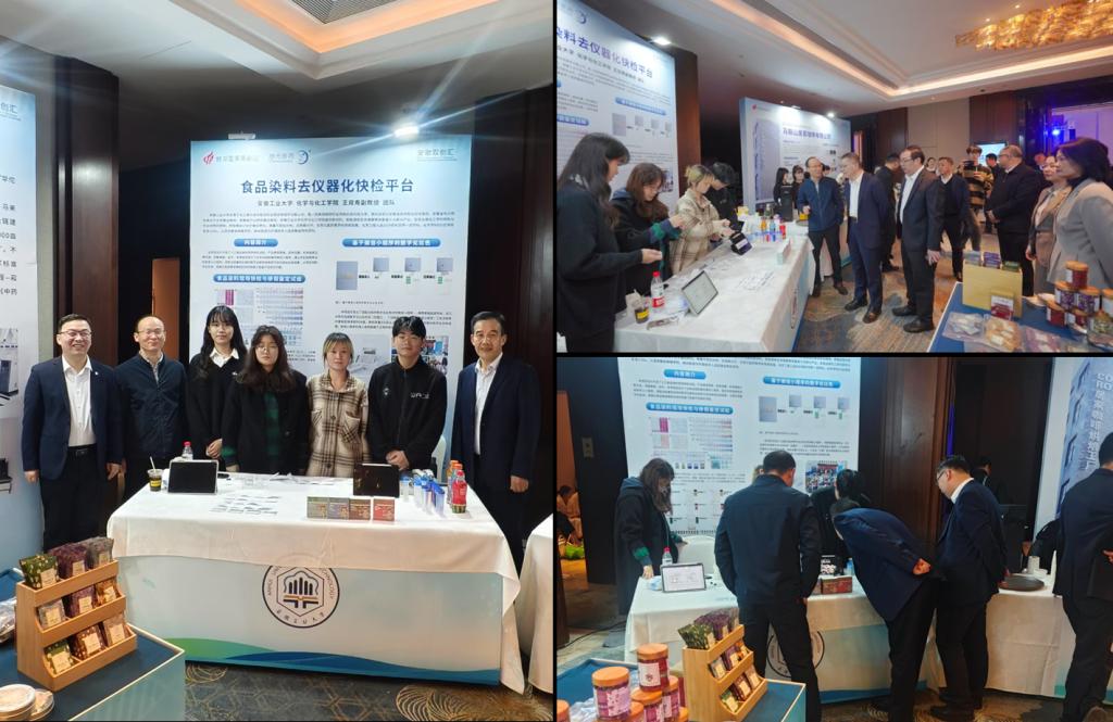 化学生物学与制药工程系王双寿副教授团队携其最新科研成果—食品染料去仪器化快检平台参加了项目展示,活动期间,中国科学院院士马大为、bwin必赢线路检测副校长郑啸、安徽皓元医药有限公司董事长郑保富以及马鞍山市卫健委、马鞍山市医保局、慈湖高新区管委会等有关部门领导来到展台就食品安全快检产品进行了现场交流,王双寿副教授就快检产品的设计研发、使用方法、应用场景等方面进行了介绍,获得了各位领导和嘉宾的高度认可。(撰稿:王双寿;审核:韩新亚、黄宇弦)