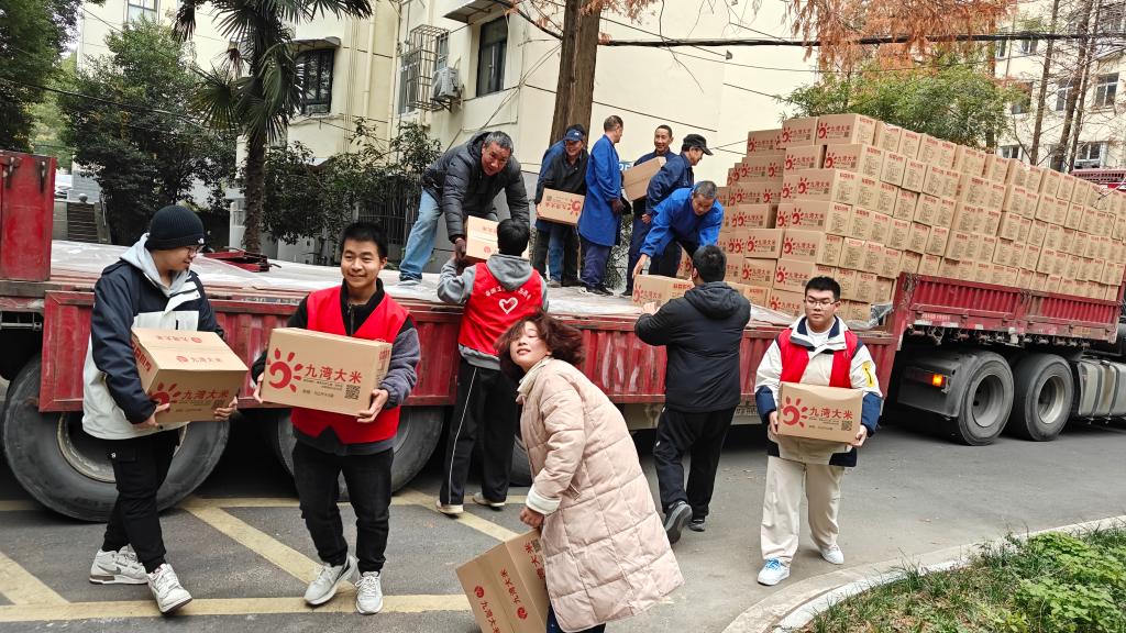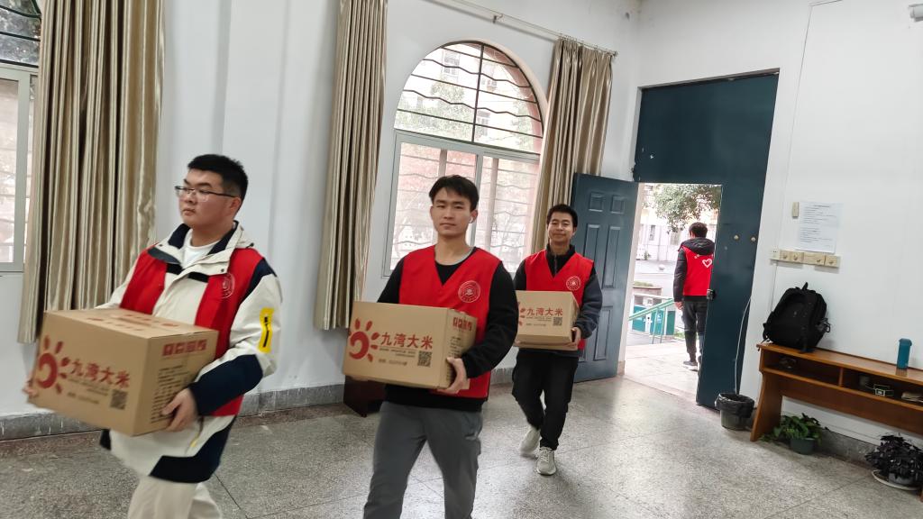 12月10日上午,正值学校发放校帮扶地区农副产品之际,76net必赢线路检测中心组织30余名2024级新生前往离退休处开展志愿服务活动,帮助离退休处搬运农副产品。