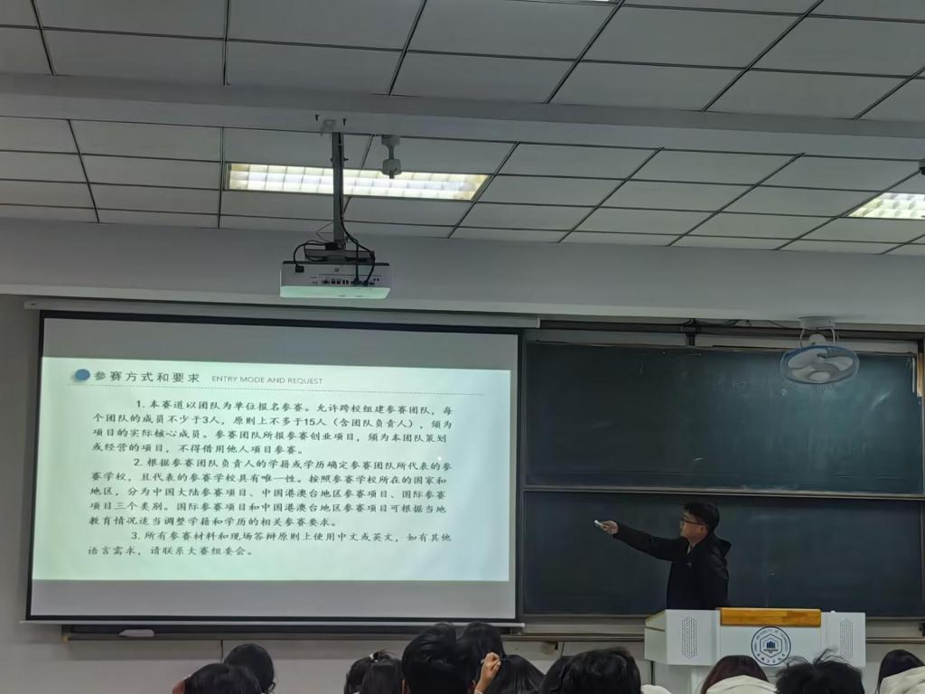 在互动交流环节,学生们围绕选题方向、跨学科合作、实验资源申请等问题踊跃提问,孔志强逐一解答,并建议同学们主动对接专业教师,充分利用学院创新创业实践基地资源,将课堂所学与科研实践紧密结合。现场学生纷纷表示,动员会明确了备赛方向,增强了参赛信心,将积极组建团队投入项目筹备。