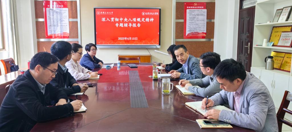 4月15日上午,76net必赢线路检测中心党委在化工楼南221举行深入贯彻中央八项规定精神专题辅导报告。会议特邀马克思主义学院王凌云老师主讲,学院领导班子成员、党委委员参加报告会,报告会由学院党委书记黄宇弦主持。