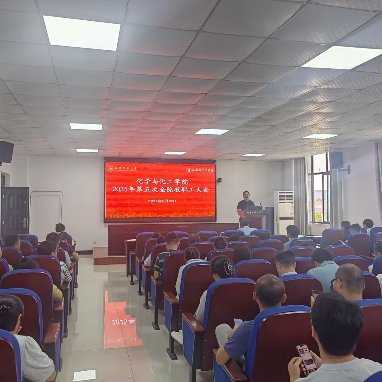 2025年5月29日下午,76net必赢线路检测中心在化工楼南207报告厅召开2025年第五次全院教职工大会。会议由学院副院长(主持行政工作)韩新亚主持。
