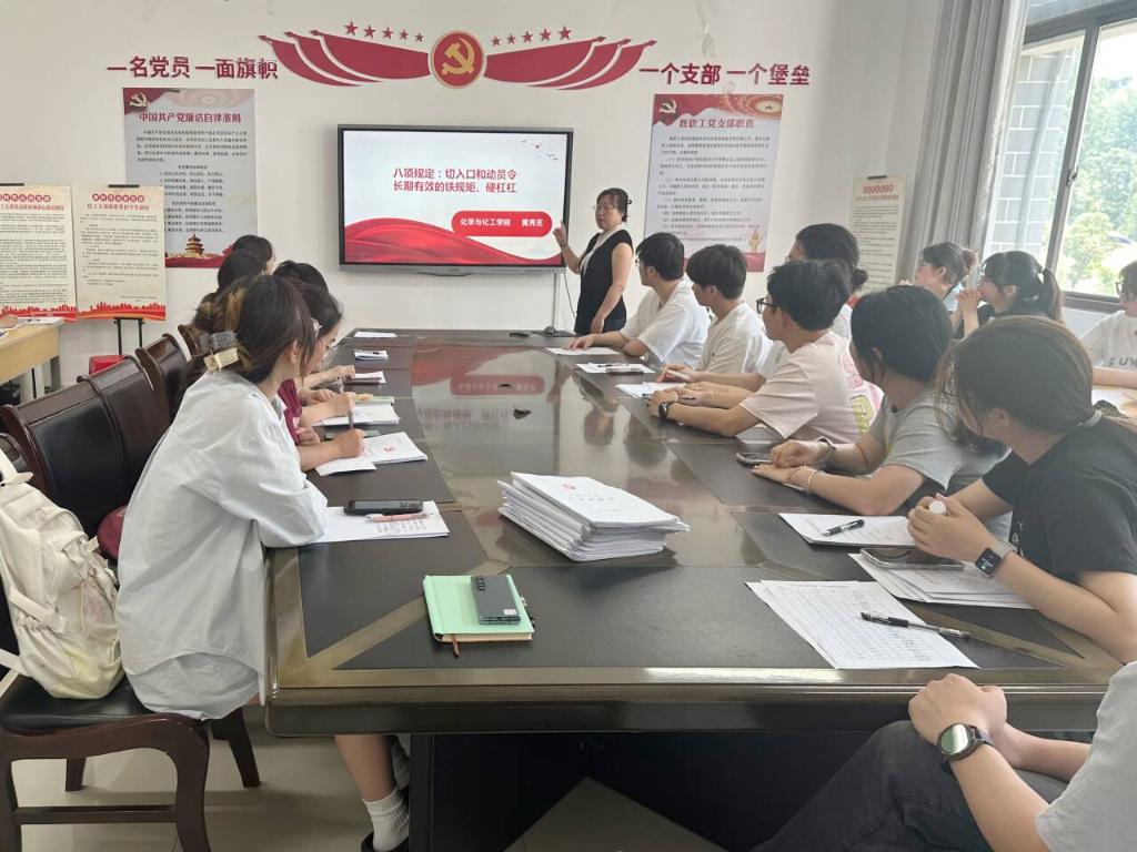 会上,冀秀芝结合真实案例向与会党员讲述了中央八项规定精神及其在高校基层党组织中的实践要求。她强调,作为化工专业的学生党员,要深刻认识和领悟中央八项规定精神的重要性,在科研学习中严格要求自己。在学术活动中,要杜绝形式主义,脚踏实地做好实验研究;在班级和支部活动中,要厉行节约,反对铺张浪费,保持艰苦奋斗的优良作风。同时,学生党员要发挥先锋模范作用,主动向身边同学宣传中央八项规定精神,营造风清气正的校园氛围。