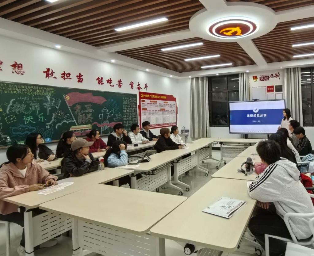 活动过程中,保研学姐们结合自身经历,从不同维度展开细致分享。陈瑶、陈香香结合自己参加多所高校夏令营的经历,从材料准备、简历优化、面试常见问题应答等方面进行细致讲解,尤其强调了“突出个人优势”“展现学术潜力”的关键作用。郝思雨、何婷、王欣雨则将分享重点放在长期积累与前期规划上,深入拆解绩点提升、科研竞赛、英语能力三大核心要素,反复强调“早规划、早行动、重积累”的备考逻辑,建议同学们科学分配时间,在筑牢专业课基础的同时,主动参与老师的科研项目,积累学术实践经历,为保研之路筑牢根基。