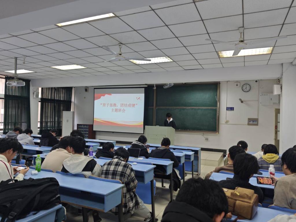 班会上,各班辅导员围绕活动主题,向同学们阐释了“原子虽微,团结成键”的深刻寓意,各民族学生如同一个个独特的“原子”,虽个体微小,但通过“五个认同”和“四个与共”的“团结之键”,紧密相连、共生共荣。这一富有化工学科特色的比喻引发了同学们的热烈讨论。