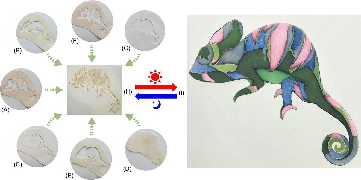 (复合光致变色材料制作的变色龙形状“智能皮肤”)