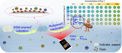 (RSM导向的多路比色协同数字化图像分析实现多染料同步可视化快检原理图)