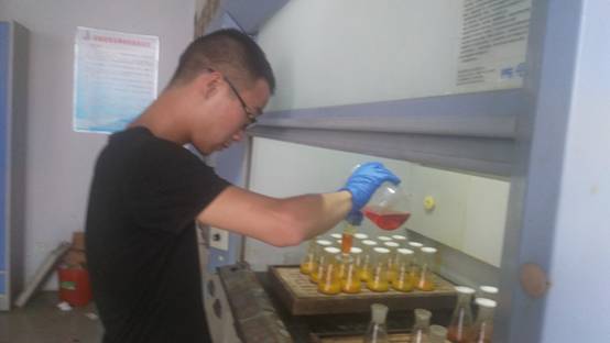 而室内小队则是听取老师讲解矿石中提取金的方法——泡沫塑料富集吸收色谱法。其具体步骤是先使用一定比例的硝酸与盐酸配置王水,将含有微量金的矿石溶解进王水中,用海绵吸收金,最后我们用混合液把金提取出来。