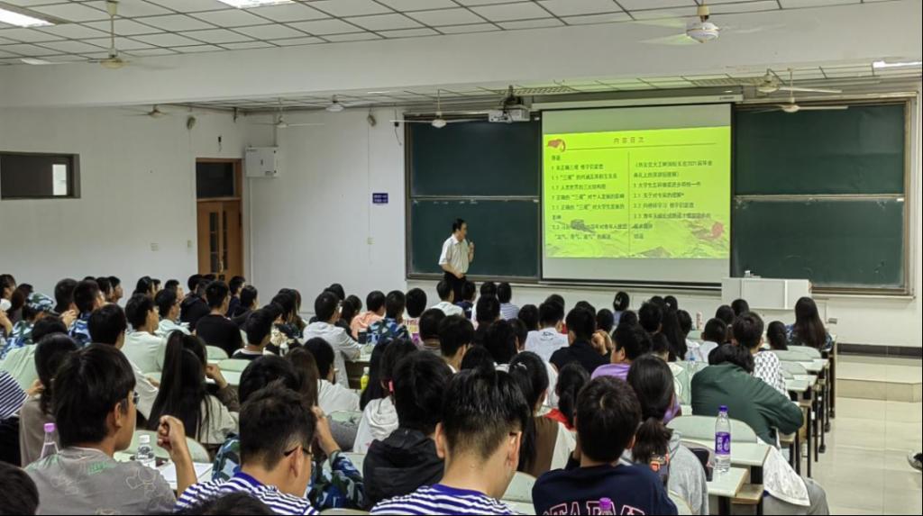 会上,胡源申教授以“知党爱党,争取入党”为主题,从党的百年历史出发,以树立健康向上的“三观”为主轴,鼓励学生积极入党,坚定向党组织靠拢;蔡保兴教授以“奋进新时代,立志成大才”为主题,从收获、积累、立德树人、综合能力四个方面,倡导转变思想、确立目标、探索路径、夯实根基。
