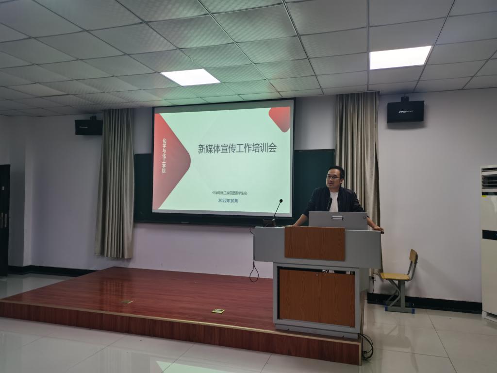 为进一步加强对学院新媒体宣传队伍管理,提升学院学生宣传队伍业务水平。10月31日晚,化工学院在秀山校区化工楼南207开展2022年下半年新媒体宣传工作培训会。院团委书记唐志强主讲,院团委学生会学生干部、青年新媒体中心全体成员、院网络评论员参加此次培训会。