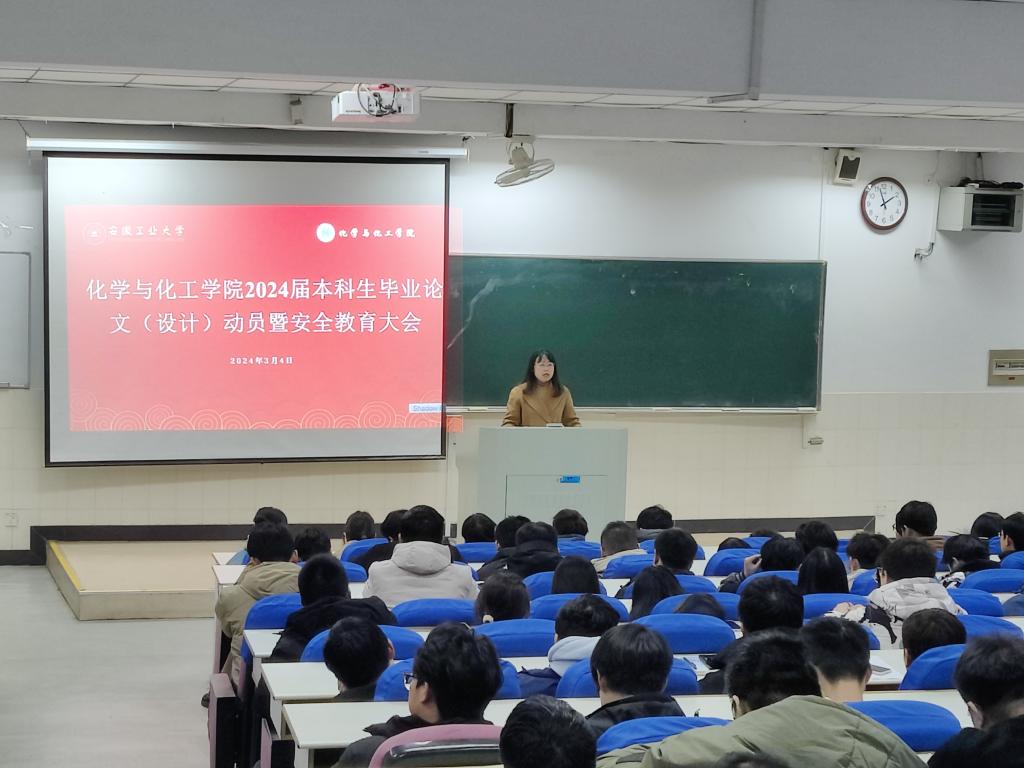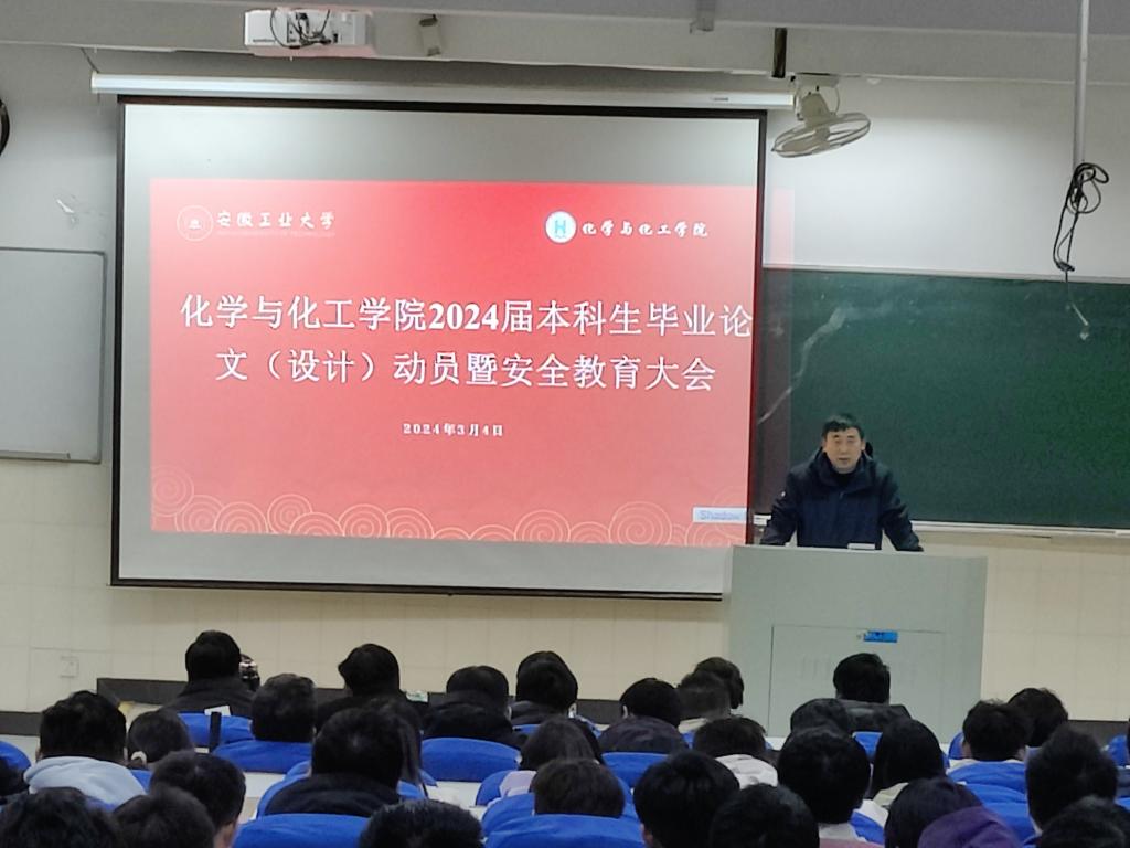 3月4日下午,76net必赢线路检测中心在秀山校区东教一阶102召开2024届本科生毕业论文(设计)动员暨安全教育大会,会议由76net必赢线路检测中心副院长夏友谊主持,学院党委副书记、纪委书记、副院长冀秀芝、各专业系室负责人、毕业班辅导员、毕业班班主任、学院2024届全体毕业生出席本次大会。