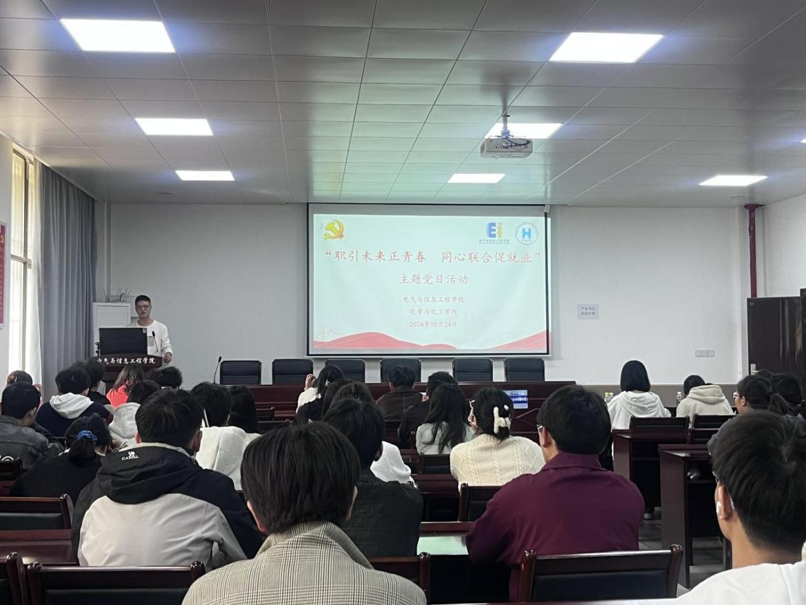 为学习贯彻党的二十届三中全会精神,帮助学生明确就业方向,提升求职技巧,规避求职误区。10月24日,76net必赢线路检测中心高分子专业本科生党支部、应用化学专业本科生第一党支部与电气与信息工程学院学生测控党支部联合开展了“职引未来正青春,同心联合促就业”的主题党日活动。活动由电气学院学生测控党支部书记杨恒基主持,化工学院学生党支部书记王元云、徐静婕、两学院学生党员代表参加。