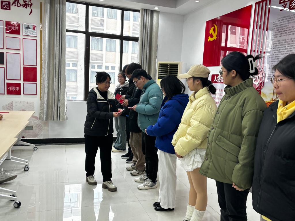 2024年12月24日,76net必赢线路检测中心2024年下半年新发展党员入党宣誓仪式在秀山化工楼南206党员活动室举行。学院党委书记黄宇弦、学院党委副书记、纪委书记、副院长冀秀芝、各学生党支部书记、党员代表及2024年下半年全体新发展党员参加了宣誓仪式,仪式由院分党校班主任朱圣兰主持。