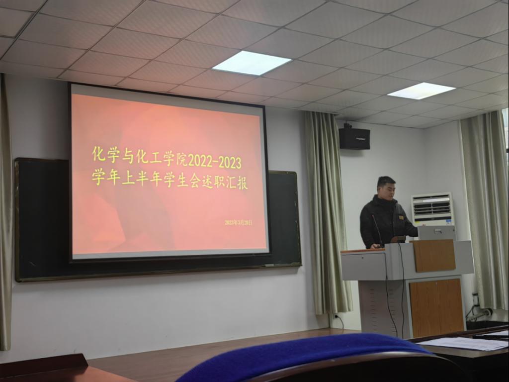 化工学院于320下午在秀山校区化工207报告厅召开2022-2023学年第一学期学生组织工作人员述职评议会。院党委副书记、副院长冀秀芝,院团委书记唐志强、各年级辅导员、学生代表以及院团委学生会全体成员参加此次评议会